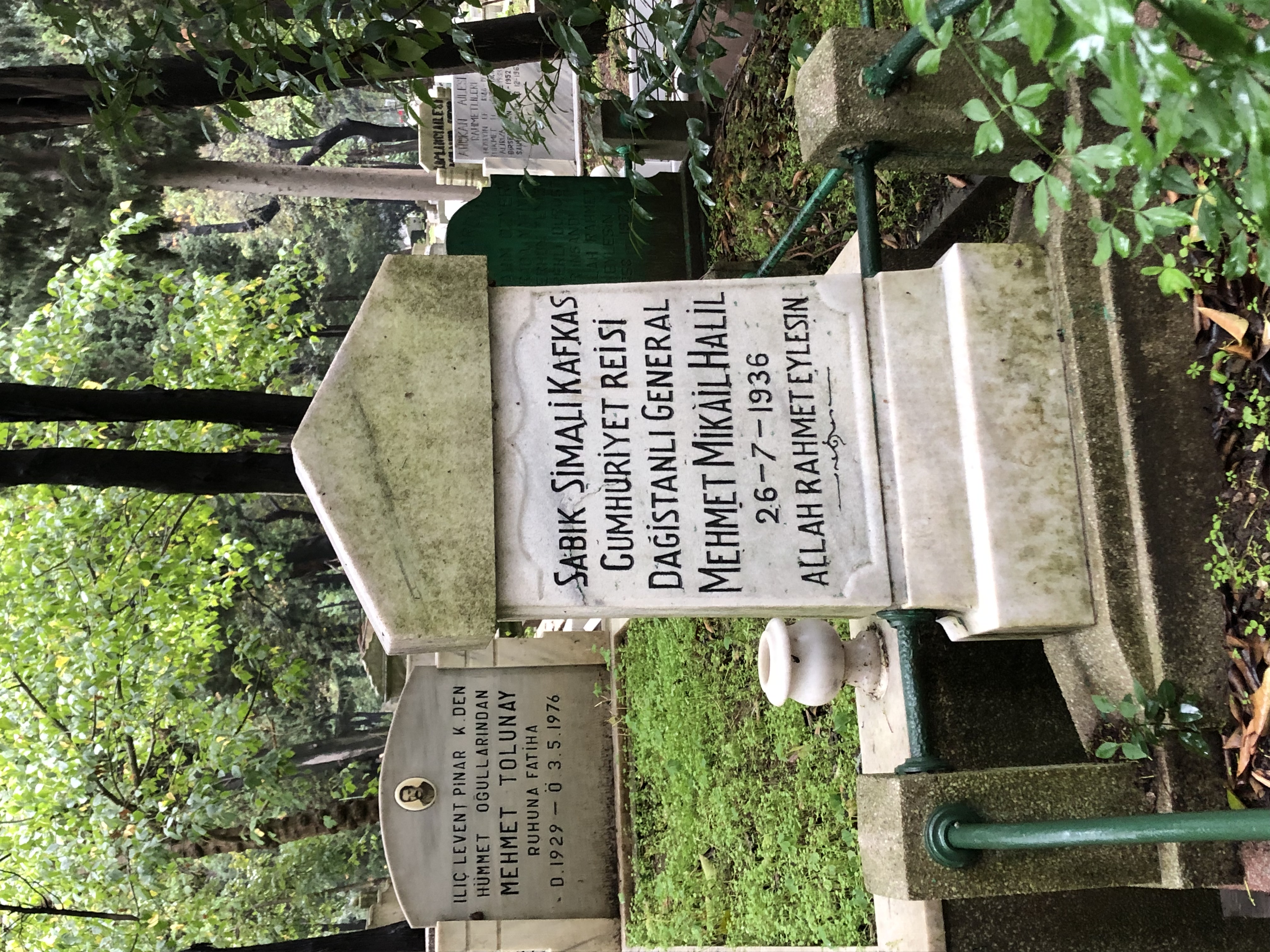 Mikail Khalilov followed a line at peace with the state during his life in exile in Turkey. The Prime Minister of the time, İsmet İnönü, made attempts invain to bring his family and children, who remained in the Soviet Union, to Turkey. No single positive result was obtained as the Bolsheviks had already sent the family into exile. General Khalilov, for whom the Republic of Turkey granted a salary, was also allocated a mansion near Yıldız Palace in Istanbul and a house near the British consulate. In this respect, he was considered much luckier than Pshemakho Kotse (Kosok), who lived his life in misery in a small cell in the Narmanlı Han (Hostel), and many other North Caucasian political refugees. Living the greater part of his life in Bursa from 1931 to 1936, Khalilov passed away on July 26, 1936, and was buried in the Feriköy cemetery in Istanbul.