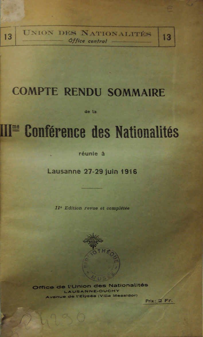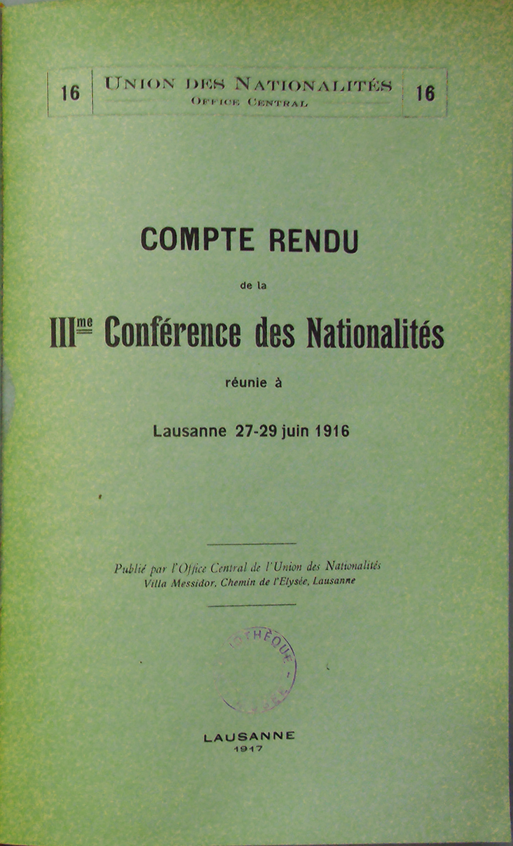 The Union of Nationalities had convened two earlier conferences (1912 and 1915). The growing importance of the nationalities question, especially in the context of WWI and the declared war aims of France and Britain (liberation of peoples), prompted the organization of a third meeting. The principal aim of the conference was to finalize the Declaration of the Rights of Nationalities and to conduct a documentary inquiry into the grievances, aspirations, and political conditions of various oppressed or stateless peoples. It was stated that Switzerland was chosen for its neutrality, multilingual structure, and the large presence of political committees of exiled or colonized peoples. It was emphasized that the conference would not judge these claims, but would merely record them as documentation for postwar peace negotiations. So, from the very outset, the conference did not intend to find practical solutions for the troubles of the stateless nations, and the main goal was limited to creating files for use by diplomats at the peace conference after the war. Thus, the core intellectual achievement of the conference was to publish The Declaration of the Rights of Nationalities. Nevertheless, the biased view of the conference towards certain nations was visible in a contentious point involving an article about “protection of inferior races.” Delegates from Egypt, Tunisia, and others argued the language was offensive and colonial. Also, the secret agenda of the conference, like internationalization of seas, straits, and maritime canals, was also revised.